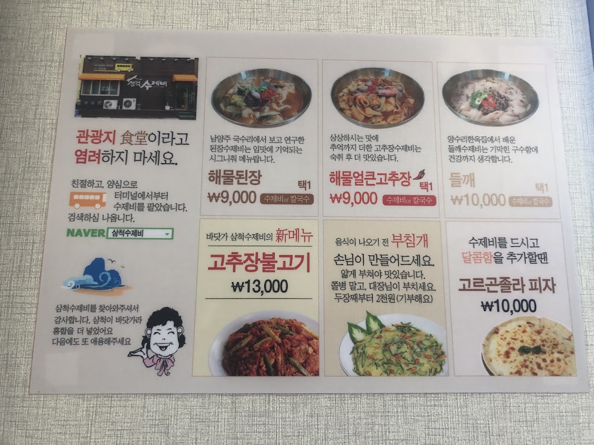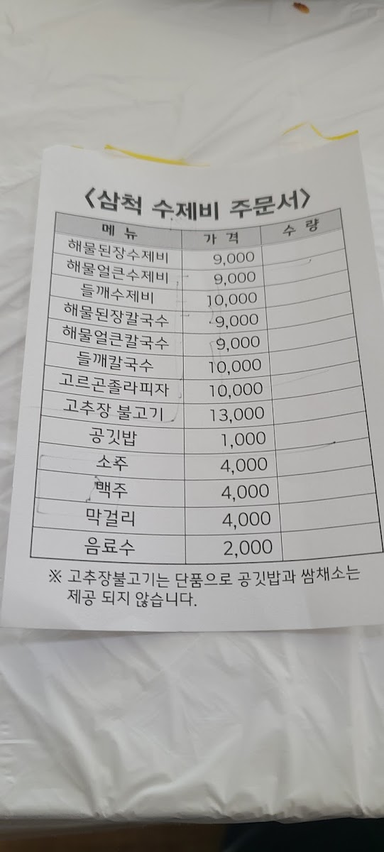 Introducing 삼척수제비 (Samcheok Sujebi), a hidden gem nestled in the scenic city of Samcheok, Gangwon-do. Located at 126 Deoksanhaean-ro, this eatery specializes in handmade sujebi, a delightful Korean noodle soup, accompanied by fresh seafood and robust flavors.